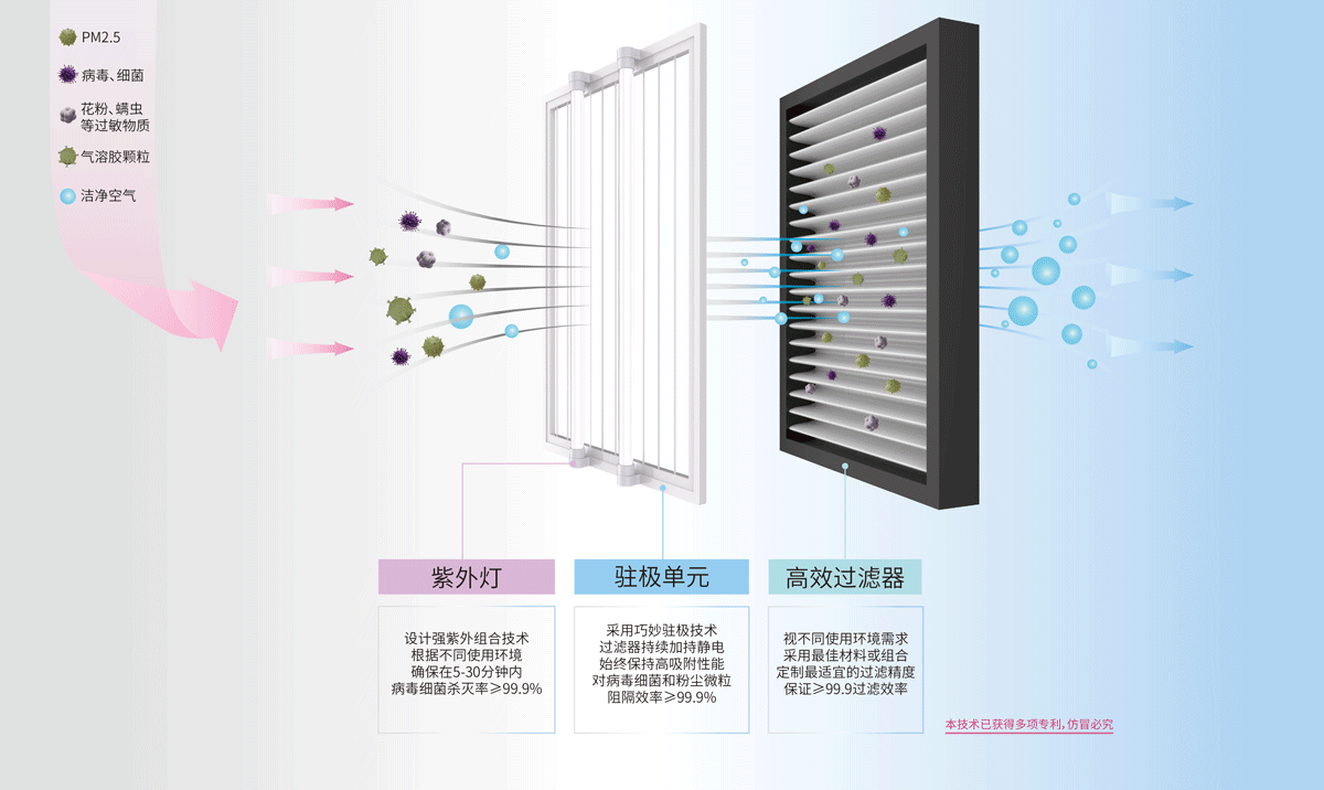 現(xiàn)有幾乎所有的空氣處理系統(tǒng)均難以配置有效的空氣殺菌消毒系統(tǒng),因此,面臨新冠病毒的襲擊,毫無應(yīng)對之策,唯有停工停產(chǎn),造成了嚴種的社會停擺和經(jīng)濟損失,我們研發(fā)團隊,提出新的方法論,徹底顛覆現(xiàn)有殺菌消毒理念的傳統(tǒng)思維,基于人們對公共衛(wèi)生安全的憂慮,創(chuàng)造性地設(shè)計出模塊化動態(tài)過濾凈化、靜態(tài)殺菌消毒的技術(shù)裝置。